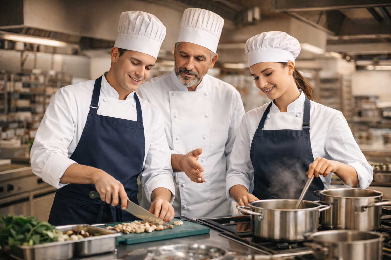 Es erwarten Dich spannende und abwechslungsreiche Herausforderungen ergänzt durch interne und externe Trainings, Prüfungsvorbereitungen und den Berufsschulunterricht. Die Arbeit mit Lebensmitteln und natürlich der Spaß am Kontakt mit anderen Menschen stehen in Deinem Ausbildungsalltag im Vordergrund. Wir bringen Dir bei, was man aus Lebensmitteln machen kann und an welche Hygienevorschriften man sich halten muss. Kostenstellen, Warenwirtschaft und Küchenorganisation gehören ebenfalls zum Ausbildungsprogramm.